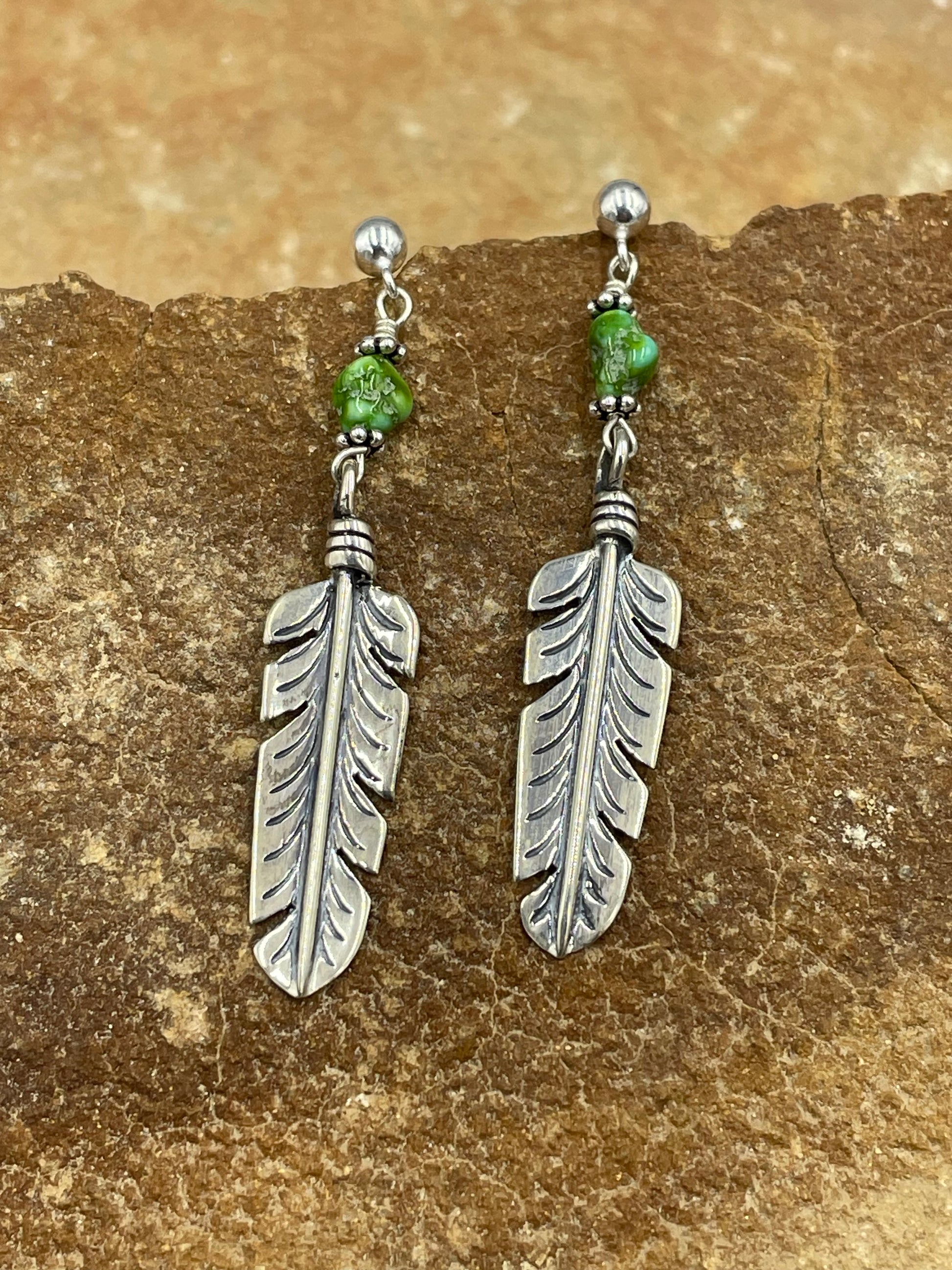 Sterling Silver Feather Earrings with Sonoran Gold Turquoise